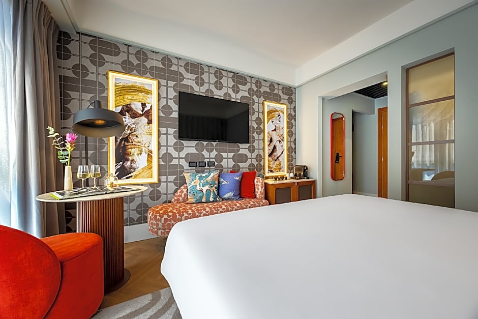 This exclusive room is suitable for who want to indulge in something more. It has a king-size bed, parquet flooring, some on the upper floors and a balcony. In your room you will find at your disposal a bathrobe with slippers and a courtesy kit, a kettle with a selection of drinks to make your overnight stay more comfortable. In addition, you will be provided with a code to access a dedicated Wi-Fi line to navigate faster. The room is equipped with: TV with satellite channels, air conditioning, safe, minibar with two bottles of water included, bathroom with bath or shower. Daily newspaper in the room on request, subject to charges.